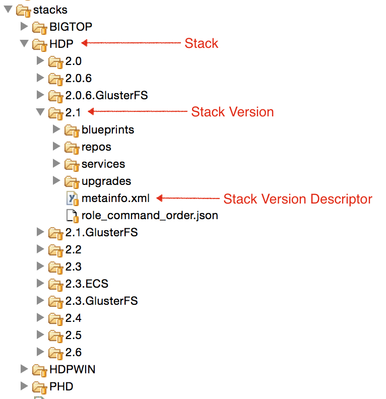 A stack is a collection of services. Multiple versions of a stack can be defined, each with its own set of services. Stacks in Ambari are defined in ambari-server/src/main/resources/stacks ;folder, which can be found at /var/lib/ambari-server/resources/stacks folder after install.