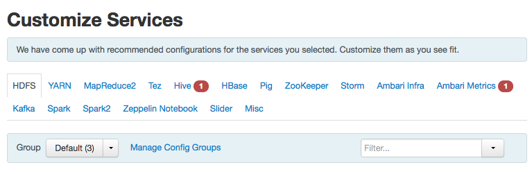 The following instructions describe basic steps for using Ambari to install HDP components.