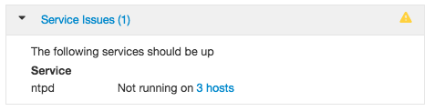 On the Host Checks window, the following warning indicates that you need to start ntpd on each host: